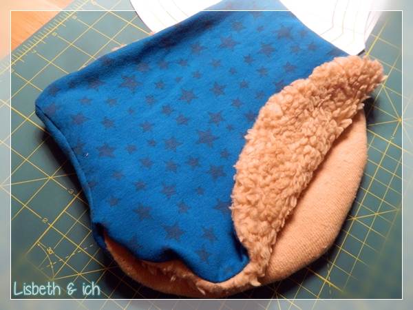 Damit das Gebettel ein Ende hat, habe ich ihm vor einiger Zeit seine eigene Beanie genäht. Diese war leider ein bisschen zu groß. Ehrlich gesagt, sah er aus wie ein Schlumpf 😉