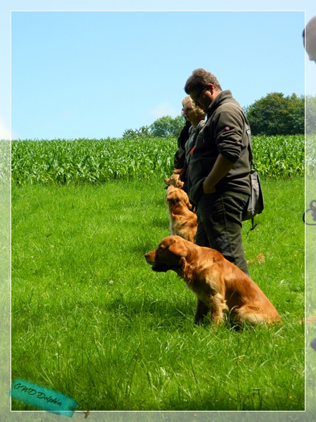 Der Golden Worker D-Wurf war mit 6 Hunden vertreten. Zu uns gesellte sich ein Labbi ungefähr im selben Alter. Wir stellten uns zur ersten Aufgabe auf.