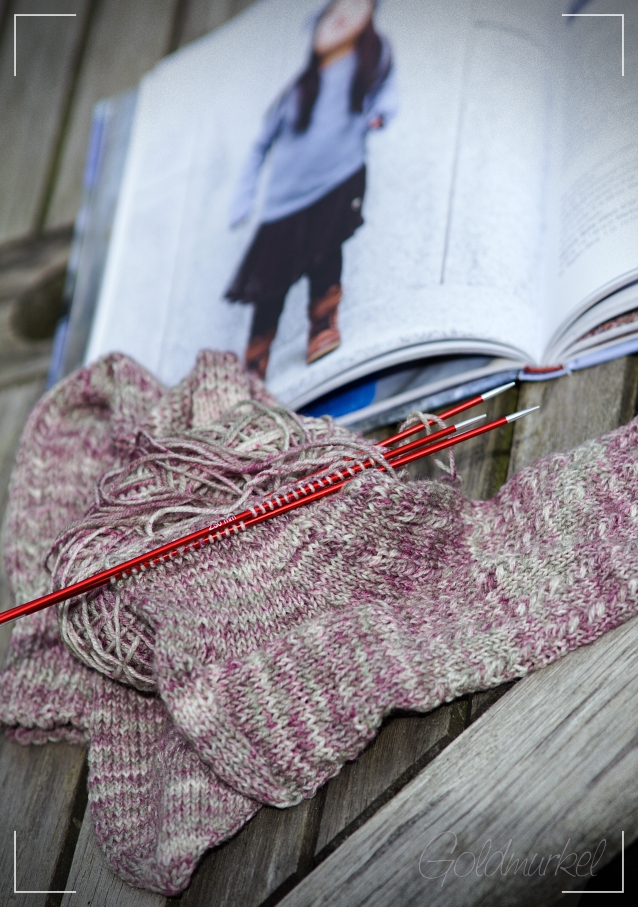 Den Pulli habe ich gefrustet in seiner Projekttasche gelassen. Es nervt mich einfach kolossal, dass ich anscheinend zu doof bin ein Perlmuster mit Raglanzunahmen zu stricken.