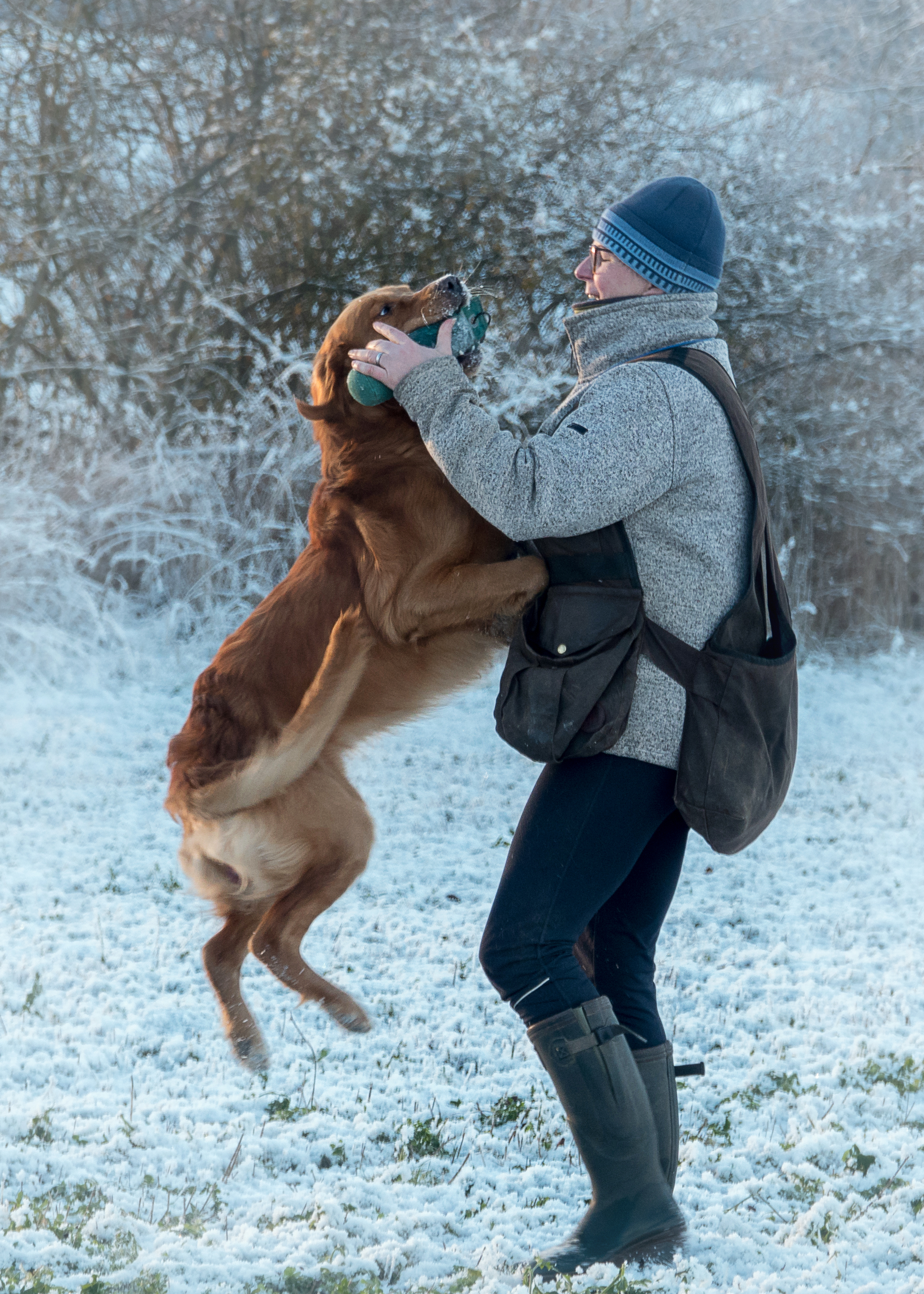 Mac kam mit all dem viel besser zurecht, als ich vermutet hätte. Ja, er ist einmal eingesprungen und ja, er hat sich an der Fallstelle des Balls aufgehängt aber, das sind auch alles Dinge, die er aus unserem Training noch nicht kennt. Er hat bisher nur zwei Mal mit einem anderen und gearbeitet und hier waren es gleich zwei, ihm unbekannte Vierbeiner.