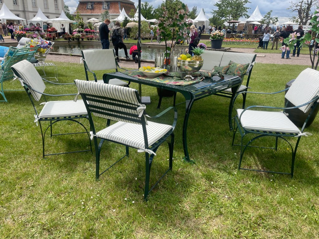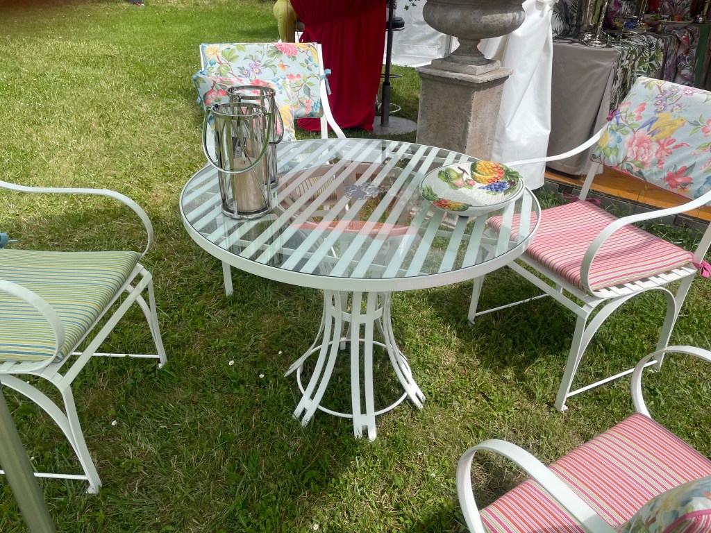 Und dann erfüllten wir uns noch einen großen Wunsch. Wir waren seit langem auf der Suche nach einer runden Sitzgruppe aus Metall für unsere kleine Terrasse. Vieles haben wir uns angeschaut und Nichts hat uns so richtig gefallen. Jetzt haben wir unsere Traummöbel gefunden und gekauft.