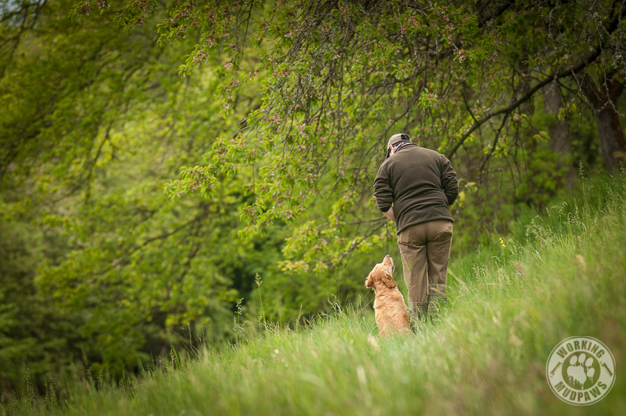 Mit Hetty wollte ich das Wasser als Verleitung nutzen und baute auf die Schnelle einen Voranpunkt auf. Vertrauensweg hin, 2 Dummys auslegen, zurück zum Startpunkt – schicken.